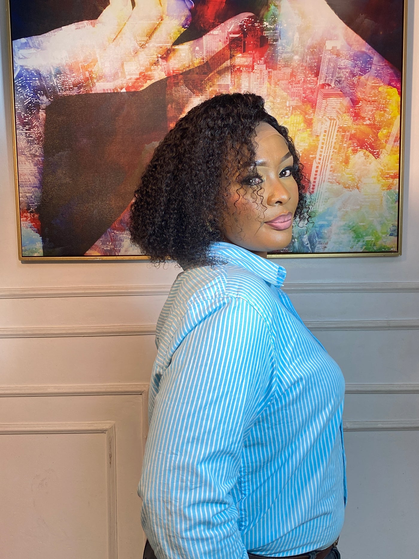 12" kinky curly wig is made from 100% human hair and comes in natural black (1B). The 13x4 lace front gives a seamless, natural look, while the soft, bouncy curls add volume and style. Easy to wear, tangle-free, and beginner-friendly.
